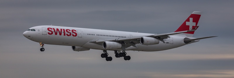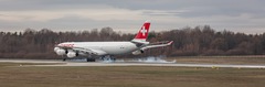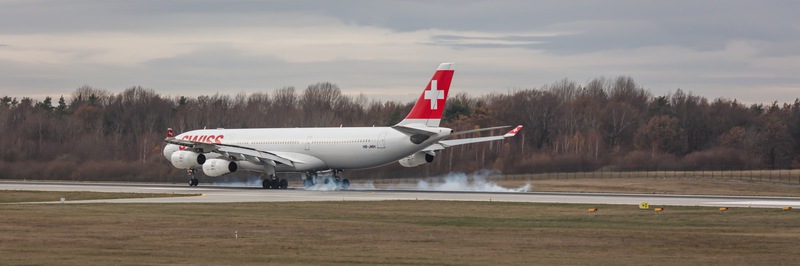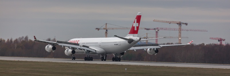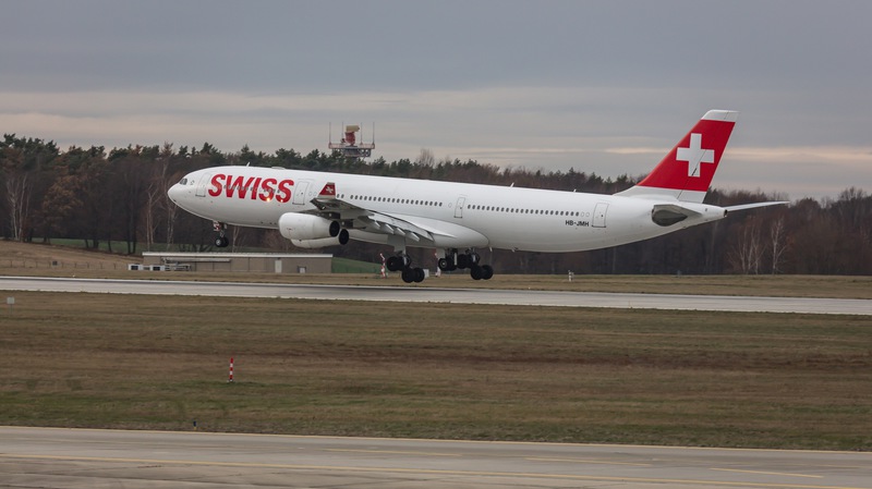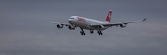 SWISS Airbus A340-313 bei der Landung in Dresden Klotzsche.