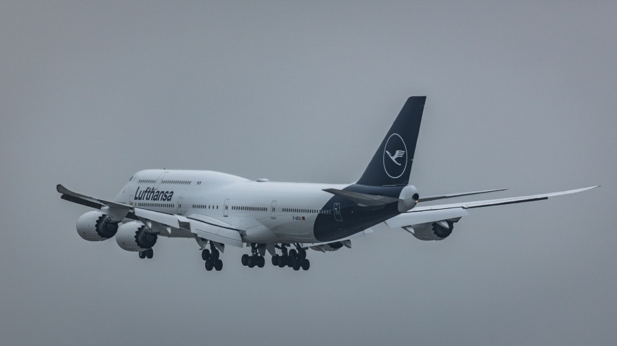 Lufthansa Boing 747-8 beim Überflug in Dresden Klotzsche am 08.02.2018