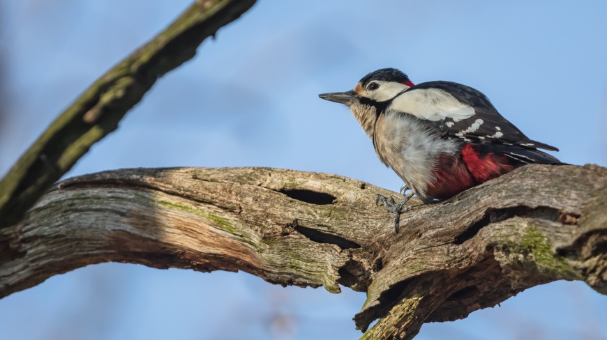 Herr Buntspecht wärmt sich in der Morgensonne.