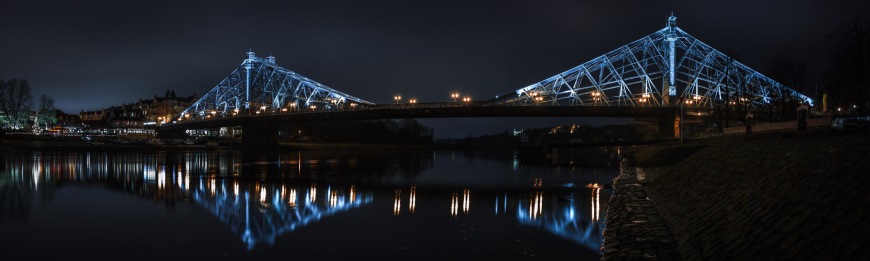 Das Bild zeigt die Loschwitzer Brücke in Dresden, welche als König-Albert-Brücke 1893 als fünfte Dresdner Elbbrücke fertiggestellt wurde. Diesen Namen trägt sie seit 1912. Beide Namen ist jedoch relativ unbekannt, da die Bücke im Volksmund nur "Blaues Wunder" genannt wird.