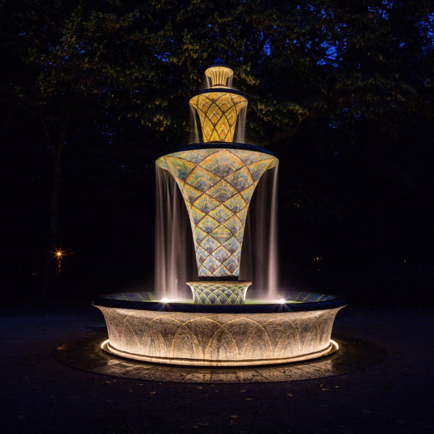 Der Mosaikbrunnen ist seit Herbst 2016 frisch restauriert im Großen Garten Dresden wieder zu bewundern. Er befindet sich von der Lennèstraße kommend auf der rechten Seite der Hauptallee. Der Brunnen wurde anlässlich der Internationalen Gartenbauausstellung 1926 gebaut und aufgestellt. Es wurden rund eine halbe Millionen Mosaiksteine in den unterschiedlichsten Farben verbaut.