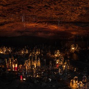 Auf dem Weg kommt man zur Feenhöhle (Jeskyně víl) im Khaatal (Kyjovské ú dolí), in welcher sich während des Winters Eiszapfen bilden. Diese werden, wie auf dem Bild vom Wochenende zu sehen, von Teelichtern und Kerzen erleuchtet.