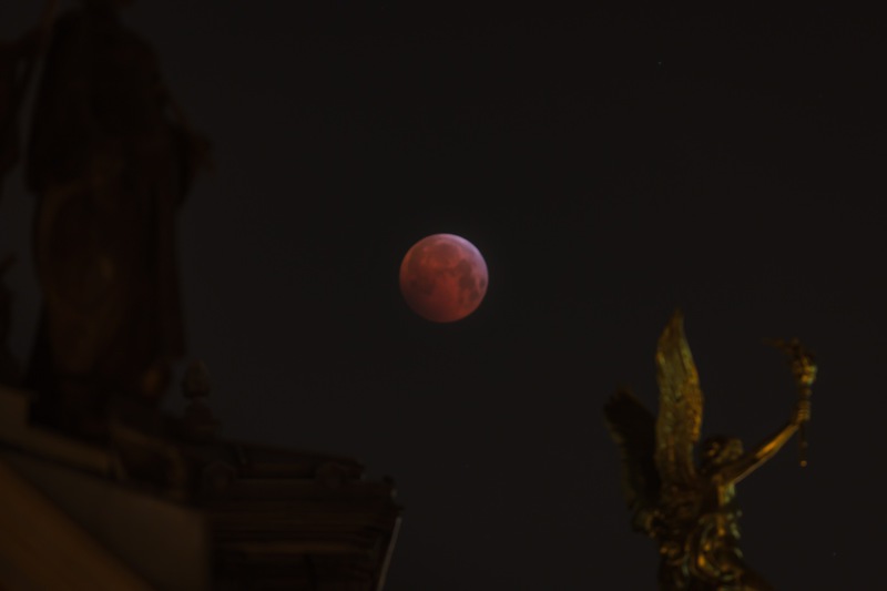 Leider waren die Wetterbedingungen dann doch nicht so optimal um die Totale Mondfisternis über Dresden zu fotografieren. Bei minus 7 Grad zog Nebel über der Altstadt auf und hüllte den Mond oft in einen dichten Schleier.