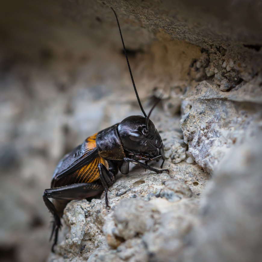 Die Feldgrille ist ein einheimisches Insekt und ca. 20-25 mm lang. Sie war 2003 in Deutschland das Insekt des Jahres und steht in der Roten Liste gefährdeter Arten.