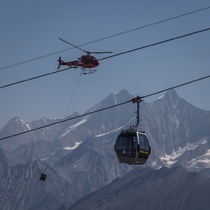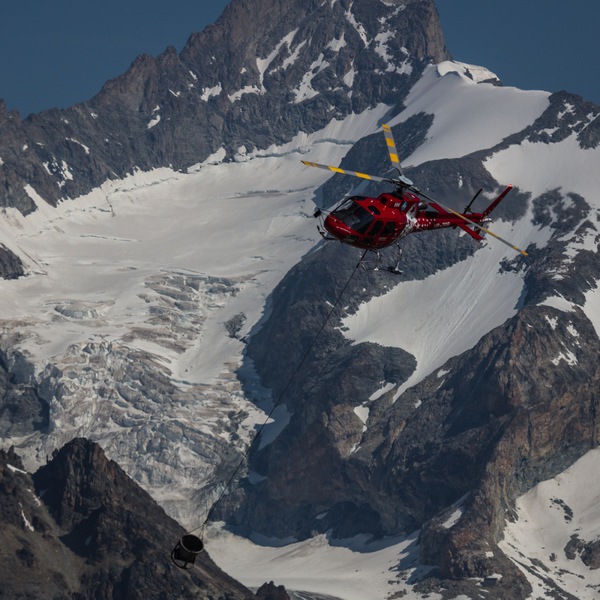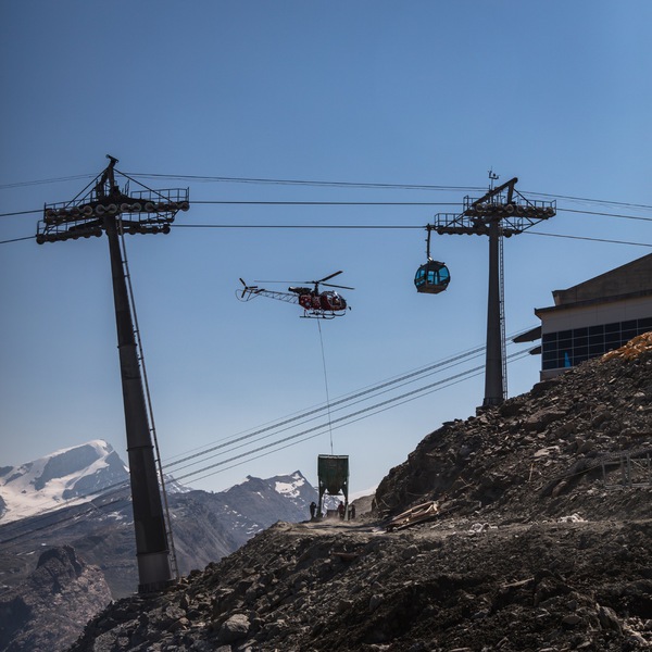 Für die Modernisierung der Liftstation Trockener Steg in 2939 m Höhe fliegt die Air Zermatt den Beton zur Baustelle.