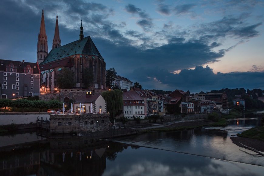 Blick von der Neißebrücke auf die Pfarrkirche St. Peter und Paul.