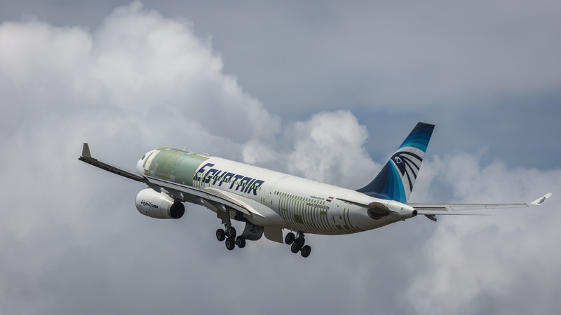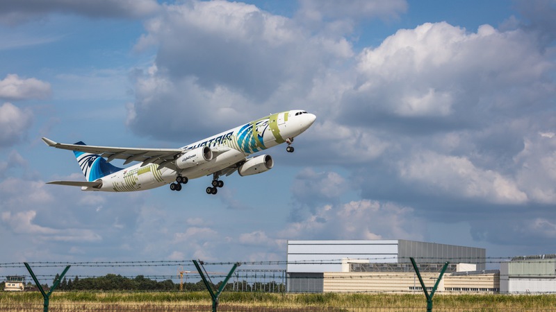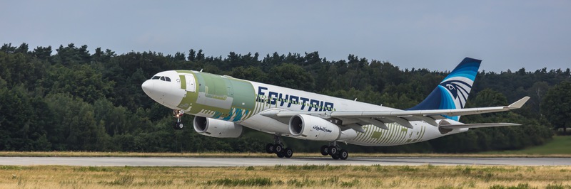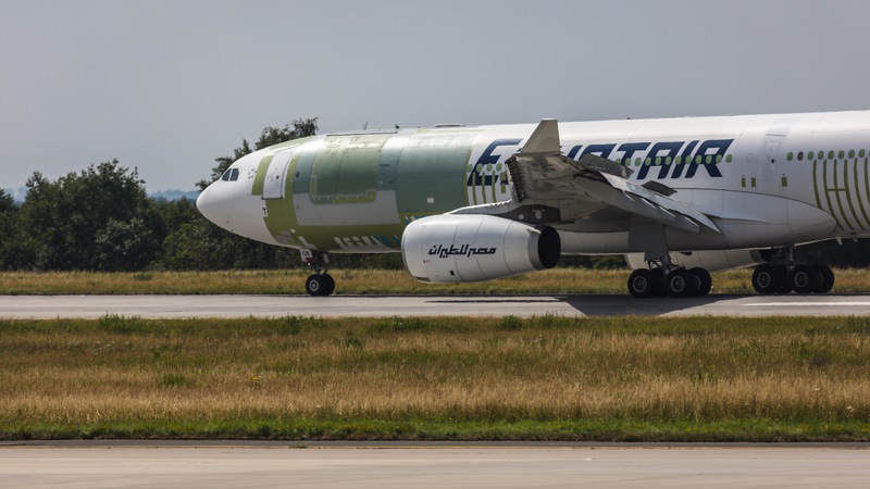 Erstflug Egyptair SU-GEC, Airbus A330-243 nach der Umrüstung vom Passagier zum Frachtflugzeug in den Elbe Flugzeugwerken Dresden.